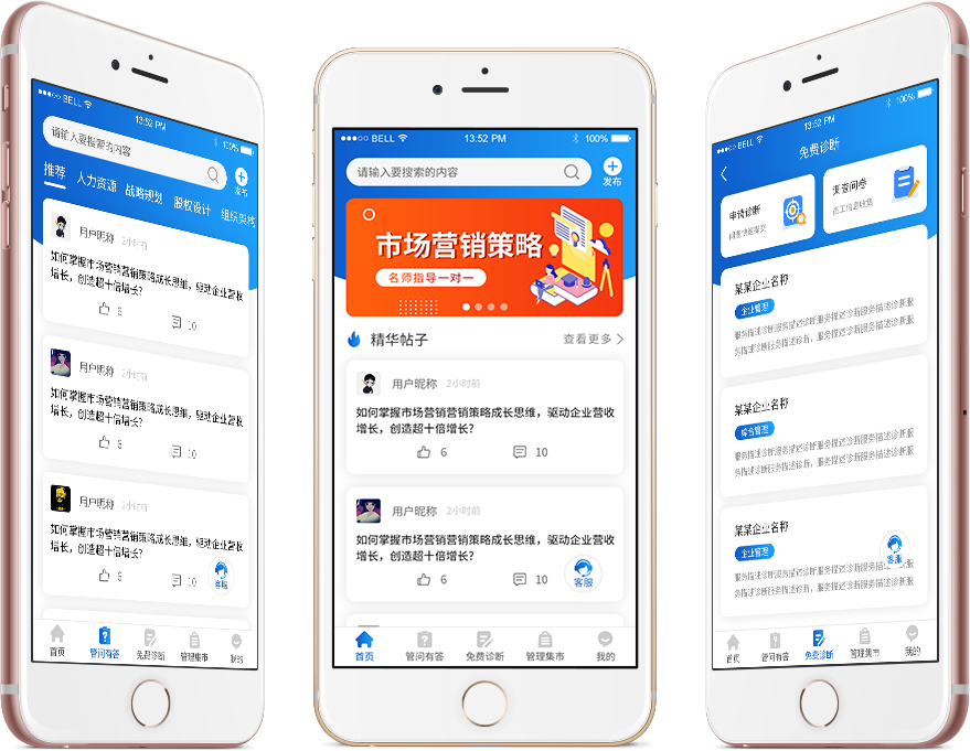 企智者APP為用戶提供在線答疑、診斷咨詢、管理集市等服務(wù),用戶可以在平臺(tái)發(fā)帖進(jìn)行提問(wèn)、回答等操作,還可以對(duì)發(fā)帖內(nèi)容進(jìn)行回帖點(diǎn)贊等操作;企業(yè)用戶可以在平臺(tái)填寫企業(yè)信息,讓平臺(tái)對(duì)企業(yè)進(jìn)行診斷并生成調(diào)查問(wèn)卷,供企業(yè)用戶的員工進(jìn)行解答,并對(duì)問(wèn)卷結(jié)果收集后做出診斷報(bào)告;管理集市是一個(gè)智慧品交換平臺(tái),平臺(tái)本身、專家、及一定等級(jí)的用戶可以開設(shè)智慧品小店,上傳一些文章、書籍、音視頻講座、課程等產(chǎn)品進(jìn)行交易。