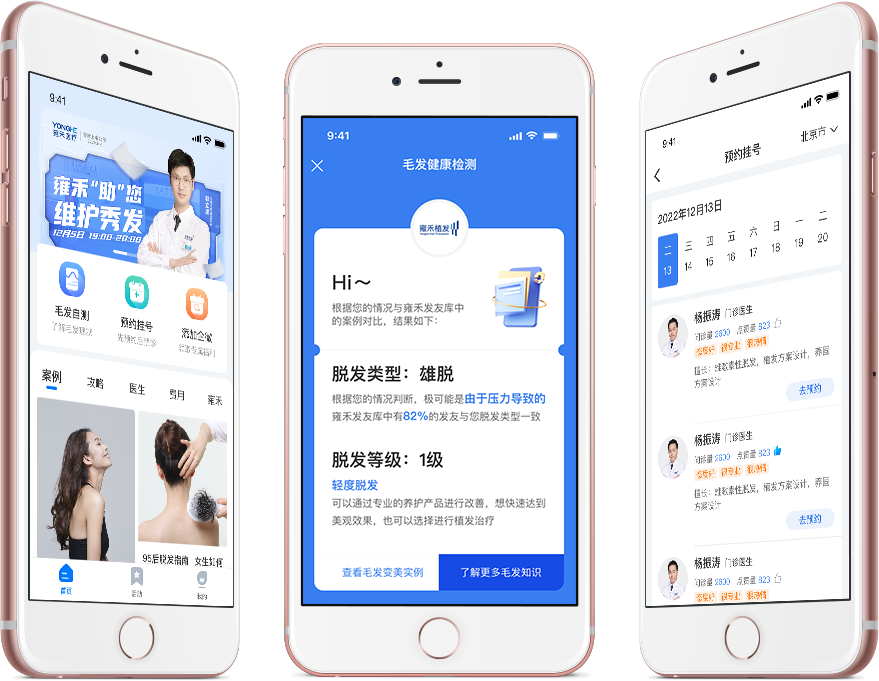 【一站式檢測預(yù)約平臺】雍禾醫(yī)療是一家提供一站式毛發(fā)醫(yī)療服務(wù)的醫(yī)療集團(香港上市公司2279.HK ),自2005年開始,一直專注于毛發(fā)醫(yī)療服務(wù)市場,經(jīng)過十多年的發(fā)展,目前在中國50個城市擁有51家醫(yī)療機構(gòu)。