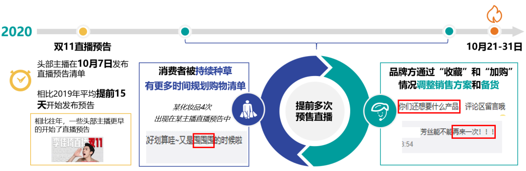 2020年,“雙11”采取分階段運營的形式,這使得雙十一的覆蓋周期比往年得到延長,優(yōu)惠的時間段進一步延展,而直播電商則配合各個節(jié)點持續(xù)深入參與,從而成為消費者的大型“互動現場”。