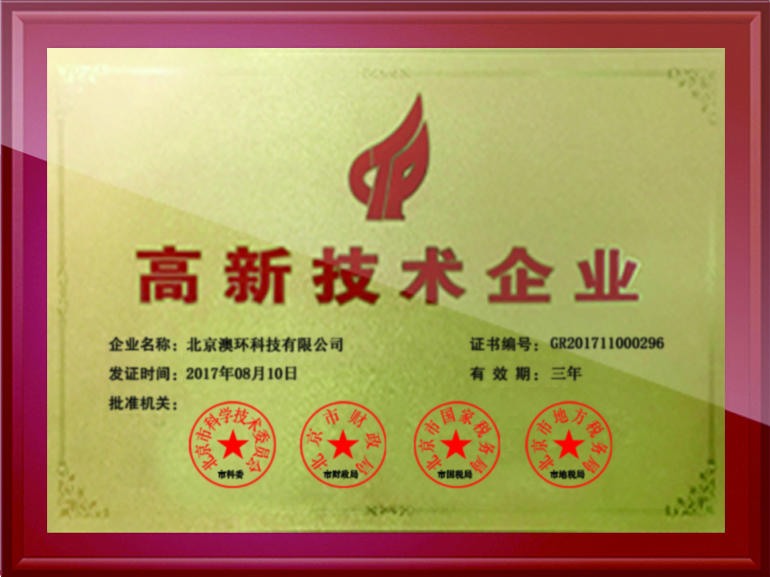 2017年,北京澳環(huán)科技有限公司喜獲佳音——根據(jù)國(guó)家《高新技術(shù)企業(yè)認(rèn)定管理》和《高新技術(shù)企業(yè)認(rèn)定管理工作指引》的相關(guān)規(guī)定,憑借專業(yè)的研發(fā)隊(duì)伍、雄厚的技術(shù)實(shí)力、持續(xù)的更新能力、科學(xué)的企業(yè)管理,在經(jīng)歷了層層審查核實(shí)之后,北京澳環(huán)科技有限公司被順利認(rèn)定為國(guó)家高新技術(shù)企業(yè),由此正式邁入國(guó)家高新技術(shù)企業(yè)行列。這是對(duì)近年來澳環(huán)科技不斷努力的成果肯定,也將對(duì)北京澳環(huán)科技之后的發(fā)展起著積極的鼓舞作用。