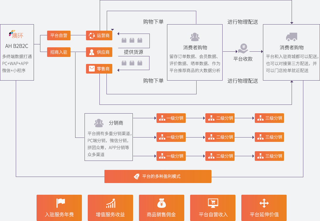 澳環(huán)B2B2C多用戶商城系統(tǒng)是澳環(huán)科技傾力打造的B2B2C全新模式電子商務系統(tǒng),支持平臺自營與供應商店鋪共存模式,