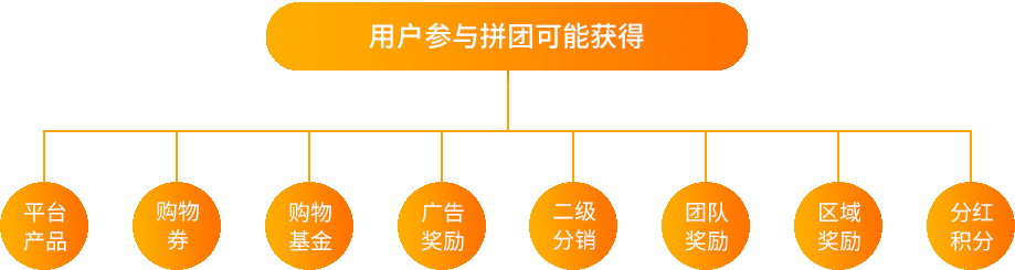 用戶可自由參與不同價(jià)格(產(chǎn)品)的拼團(tuán)活 動(dòng),中獎(jiǎng)后可自由選擇產(chǎn)品或等值購物幣。